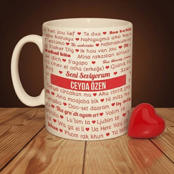 Eğer O'nu çok seviyorsanız, bunu farklı bir çok şekilde sevgilinize göstermek istersiniz. Peki kalbinizdeki kocaman sevginizi, üzerinde 100 farklı dilde "Seni Seviyorum" yazılı kupa bardak ile göstermeye ne dersiniz? Üzerinde İngilizce'den Almanca'ya, İtalyanca'dan, Rusça'ya tam 100 farklı dilde seni seviyorum yazılı kupa bardak, belirteceğiniz isme özel olarak hazırlanıyor.