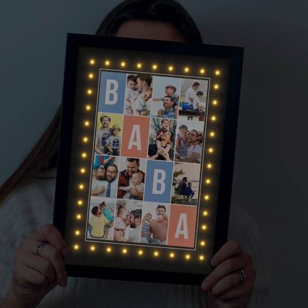 12 Fotoğraflı Babalara Özel Işıklı Çerçeve