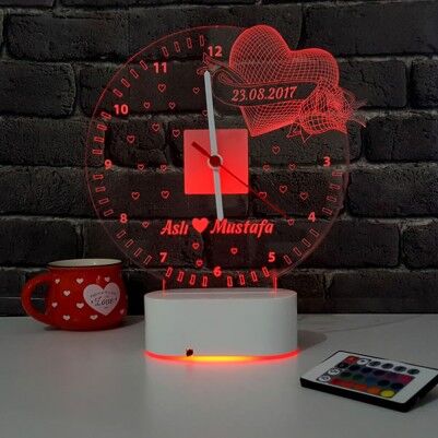 3D Kişiye Özel Romantik LED Lamba Saat