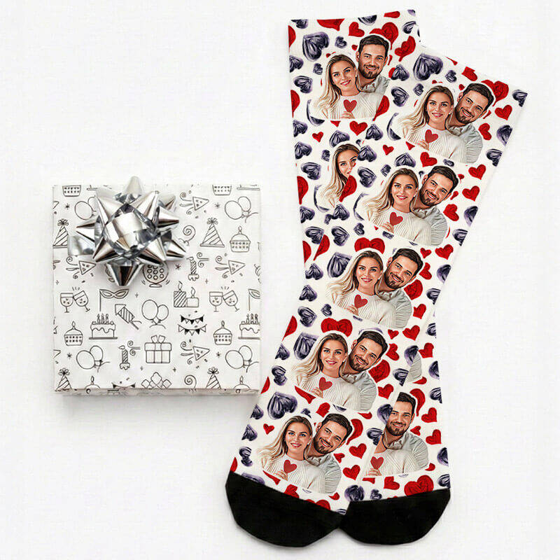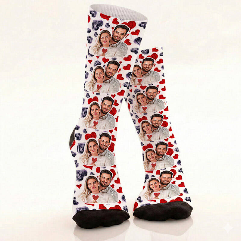 5 Fotoğraflı Kişiye Özel Kalpli Çorap