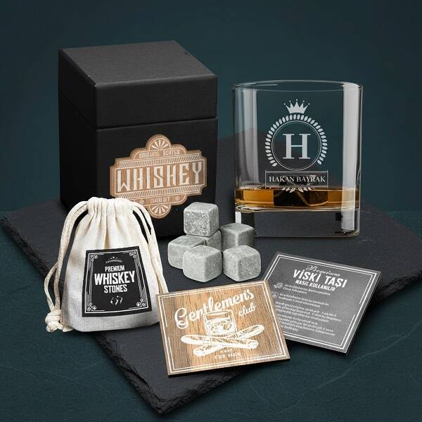 Terfilerde, sevdiklerimizin gösterdikleri başarılarda, resmi kutlamalarda, yılbaşında veya çeşitli özel günlerde "Şerefe" sözü eşliğinde içkiler yudumlanır. İşte böyle özel anlarda insanın elinde kendi ismine özel bir viski bardağından viskisini yudumlayabilmesi, farklı bir ayrıcalık olsa gerek. Siyah renkte şık kutusu içerisinde 210 cc kaliteli viski bardağı, 6 adet mermer viski taşları, 2 adet tasarım MDF bardak altlıkları ile sizlere sunduğumuz Ad Soyad Yazılı Kral Tacı Viski Seti, viski keyfi yapan sevdikleriniz için emsalsiz güzellikte bir armağan olacaktır. Erke yılbaşı hediyesi veya erkekler için doğum günü hediye fikirleri içerisinde açık ara tavsiyemiz olan Ad Soyad Yazılı Kral Tacı Viski Seti, harika fiyatıyla da siparişlerinizi bekliyor.