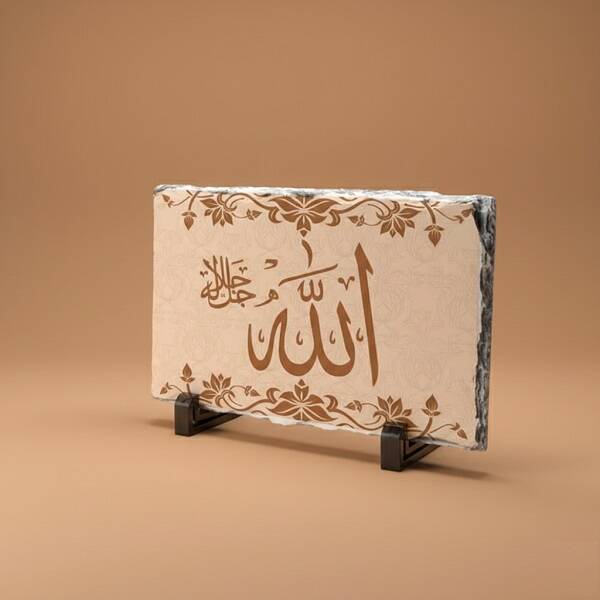 - Allah C.C.) Yazılı Taş Baskı, Sert plastik destek ayakları sayesinde masa ve benzeri düz zeminlerde sergilenebilir.