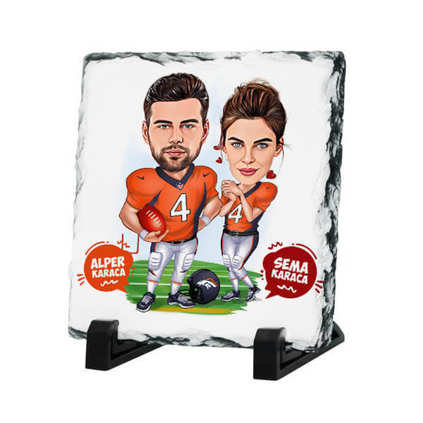 Amerikan Futbolcusu Çiftler Karikatürlü Taş Baskı
