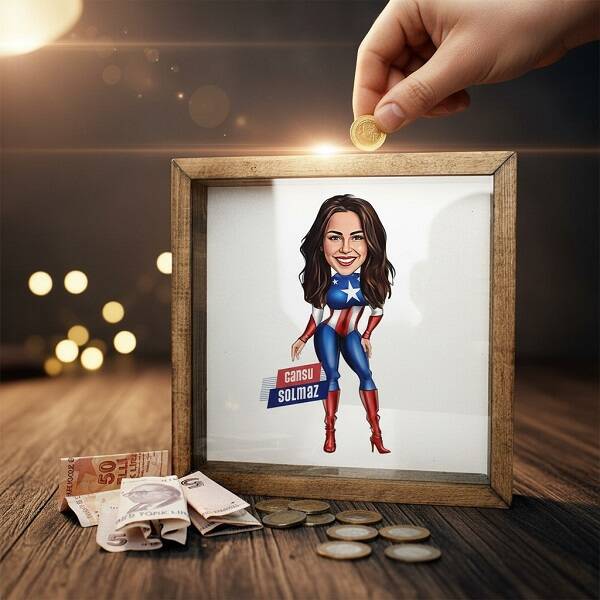 Kadınlara özel olarak hazırlanan amerikan kahramanı kadın karikatürlü kumbara, her detayında kişisel bir dokunuş taşıyor. Karikatürlü ve şık çerçeveli tasarımıyla dikkat çeken bu kumbara, sevdiklerinize farklı bir hediye sunmak isteyenler için mükemmel bir seçenek. Üstelik para biriktirme alışkanlığını da eğlenceli bir hale getiriyor!