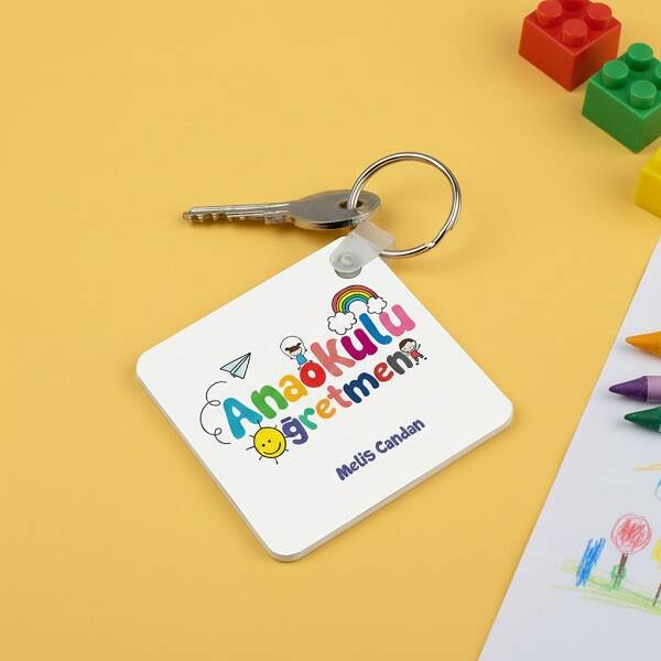Anaokulu Öğretmenine Hediye Kare Anahtarlık