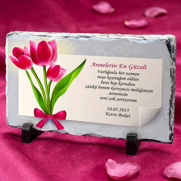 Bu Anneler Gününde Annenize olan sevginizi daha kalıcı ve ölümsüz bir hediye ile göstermek isterseniz, Anneler Gününe Özel olarak hazırladığımız Mesajlı Taş Baskı tam size göre. Olağanüstü şık bir tasarıma ve son derece dekoratif bir görünüme sahip olan Annelere Özel Taş Baskı, mesajınıza ve isminize özel olarak hazırlanıyor.
