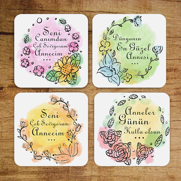 Anneye Özel 4'lü Bardak Altlığı Seti