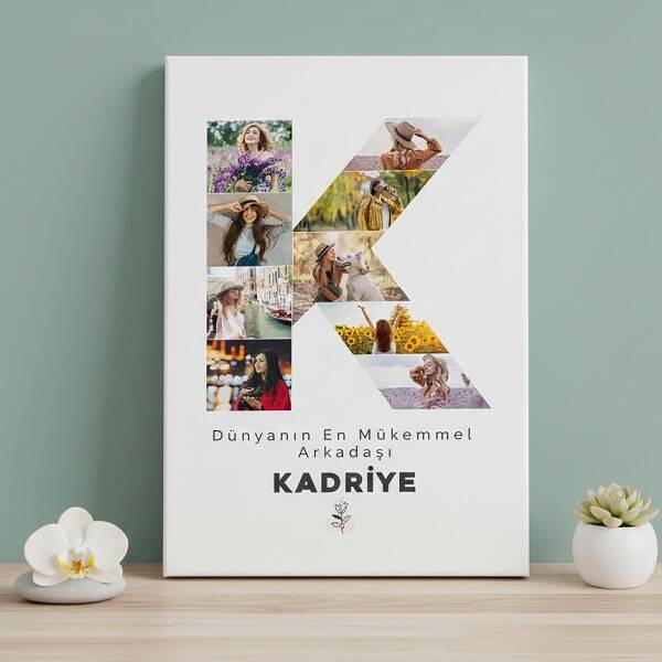 Arkadaşa Hediye Fotoğraflı Harf Kanvas Tablo