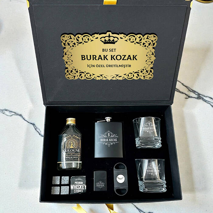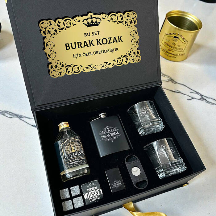 Bir hediyenin değerini artıran en önemli detaylardan biri kişiselleştirilebilir olmasıdır. Bu viski setinde yer alan bardaklar isimle özel hale getirilir. Böylece hediye tamamen o kişiye ait bir koleksiyon haline gelir. Premium kutu ise bu özel parçaları mükemmel bir sunumla bir araya getirir. Sonuç ise gerçekten etkileyici bir armağandır. Sıradan bir kutlamayı unutulmaz bir ana dönüştürecek olan bu viski hediye seti, görsel güzelliğiyle göz kamaştırıyor. Kutunun dışındaki o kaliteli doku, kapağı açıldığında yerini isme özel hazırlanmış premium bir dünyaya bırakıyor. Her parçanın kendine özel yerinin olması ve süngerlerle korunması, hediyeye verilen emeği ve özeni gözler önüne seriyor. Bu setle sadece bir ürün almıyor, sevdiğiniz kişinin hayatına estetik ve keyif katan bir başyapıt armağan ediyorsunuz.