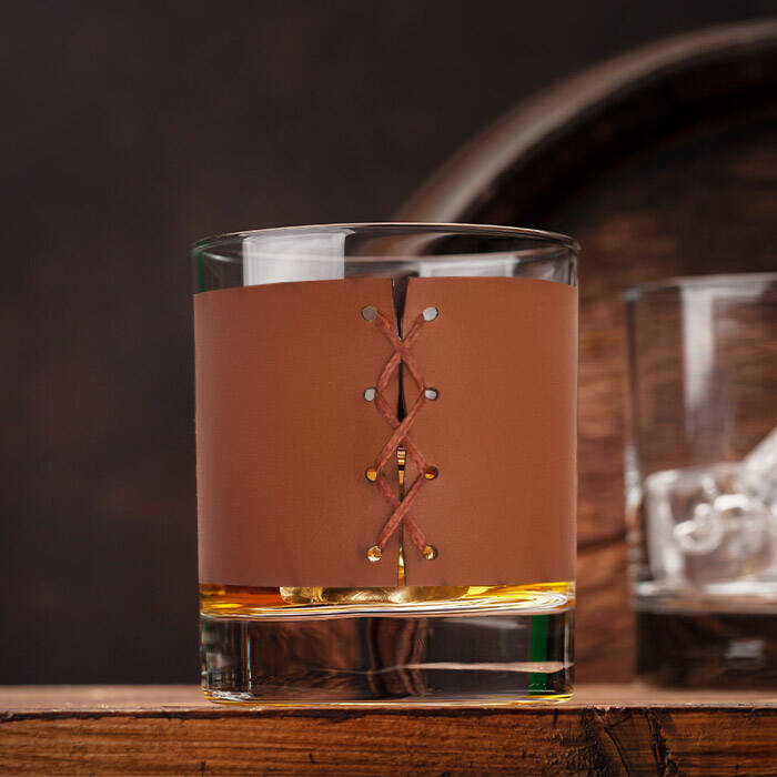 Arkadaşa Hediye Şık Taba Deri Kaplama Viski Bardağı