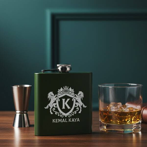 Asil Atlar Kişiye Özel İçki Matarası 6 Oz Yeşil