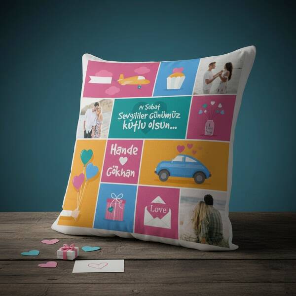 Sevgililer günü için küçük bir uyarı. Genelikle kadınlar 14 Şubat'ta erkek sevgilisinden ekstra sürprizler bekledikleri özel günlerden biridir. Dolayısıyla da siz siz olun bu önemli günde başınıza büyük bir dert açmak veya iş almak istemiyorsanız, 14 Şubat günnü pas geçmeyin deriz. Sevgilinizi son derece mutlu edecek olan bu yastık hediyesi sayesinde 14 şubat sevgililer gününüz oldukça mutlu geçecektir. Sevgililer gününü gerçek bir aşk bayramına çevirebilesiniz diye sizin için inanılmaz renkli ve inanılmaz romantik bir aşk yastığı modeli hazırladık. Üstelik bu yastığa son şeklini de tamamen siz fotoğraflarınız ve isimlerinizle vereceksiniz. Sevgililer günü için bize hazırlatabileceğiniz bu güzel yastık ve kendinizden katacağınız özel bir sürprizle biricik sevgilinize harika bir 14 Şubat günü yaşatabilirsiniz.