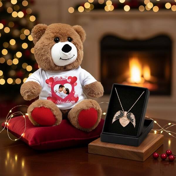 Sevgiyle büyüttüğünüz birlikteliklerinizi yıldönümünüzde kutlama zamanı geldiğinde alacağınız hediyelerin yeri çok özel olacak. Her şeye layık olan sevgilinize sadece ona özel olacak bir armağan verebilirsiniz. Kişiye özel ayıcık ve melek kanadı kolye seçeneği tüm beklentilerinizi karşılayacak güzellikte. Siz de şimdi değerlendirebilirsiniz. İlginizi ve ilgisini çekecek bir armağan olduğuna emin olabilirsiniz.Hediyeniz konusunda kararsızlık yaşamayın. O olmaz bu olmaz dememek için hediyenin online adresi Hediyemen ile seni seviyorum diyebileceğiniz birçok hediyelik eşya içinden kararınızı verin deriz. Hem ucuz hediyelikler hem de kaliteli hediyelikler seni seviyorum temasına en uygu şekilde sizler için tasarlanıyor. Yani kısaca sevginize sevgi katacak ve duygularınızı da güçlendirecek ufak bir hediye ile de sizler sevginizi karşı tarafa gösterebileceksiniz.Mutluluk meleğiniz güzeller güzeli sevgiliniz aşk meleğim ayıcık ve melek kanadı kolye ile mest olacak ve eminiz ki size bir kez daha aşık olacak. Göz alıcı isme özel bir melek kanadı tasarımlı kolye ve kişiye özel pelüş oyuncak ayıcıktan oluşan bu hediye seti, sevgilinizi gerçekten de büyüleyecek. Uzaktaki sevgiliye hediye ne gönderilir derseniz aşk meleğim ayıcık ve melek kanadı kolye bu sorunuza harika bir yanıt olabilir. Uzaktaki sevgilinize bu güzel hediye seti ile sürprizlerin en güzelini yıldönümünüzde yapabileceksiniz. Kişiye özel pelüş oyuncak ayıcık ile üzerinde isim yazılı 925 ayar gümüşten yapılmış melek kanadı kolye bulunan bu özel hediye setini şimdi hemen sipariş edin.