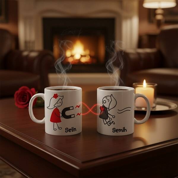 Bir kupa üzerinde sevgilinizi temsilen elinde mıknatıs tutan kız çöp adam, diğer kupa üzerinde ise sizi temsilen bu çekim gücüne karşı koyamayan ve kalbini kaptıran bir erkek çöp adam! İnanılmaz derecede etkileyici ve sade bir tasarıma sahip olan Aşkın Çekim Gücü 2'li Kupa Bardak sizin ve sevgilinizin isimlerine özel hazırlanıyor. Doğum gününde, sevgililer gününde, ilişkinizin yıl dönümünde biricik sevgilinize hem kullanışlı, hem romantik, hem de şirin bir hediye vermeyi düşünüyorsanız, 2'li set olarak satışa sunduğunuz Aşkın Çekim Gücü Kupa Bardağı kaçırmamalısınız!Aşkın Çekim Gücü 2'li Kupa Bardak Hakkında Bilinmesi Gerekenler