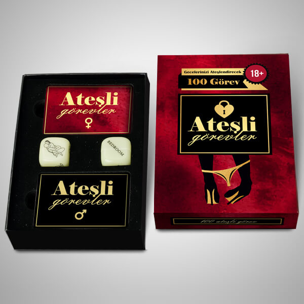 100 ateşli görevden oluşan Ateşli Görevler Oyunu ile geceleriniz artık çok daha renkli ve heyecan verici geçecek. Aynı zamanda dilerseniz Ateşli Oyunlar kutusu içerisinden çıkan Karanlıkta Parlayan Kamasutra Zarları ile partnerinizi ikinci bir etkileyici sürprizi daha yapabilirsiniz. Bu zarlar özel üretim olduğu için karanlıkta bile heyecanınızı kaldığı yerden devam ettirmenizi sağlıyor. Zarlardan biri üzerinde cinsel pozisyon; diğeri ise bu cinsel pozisyonu uygulayacağınız mekan tanımlanmıştır. Sevgilinizle baş başa geçireceğiniz gecelerinizde heyecanınızın dozajını en üst seviyelere çıkarmanızı sağlayacak olan +18 Ateşli Oyunlar Kutusu sevgiliye yılbaşı hediyesi olarak sunulabilecek en orijinal hediye fikirlerinden. Son derece şık özel kutusu, erkek için 50, kadın için 50 adet olmak üzere toplamda 100 adet ateşli erotik oyunları, karanlıkta parlayabilme özelliğindeki Kamasutra zarları ile bu güzel oyun kaçmaz! Siz de elinizi çabuk tutarak, Türkiye'nin dilediğiniz il veya ilçesine Ateşli Oyunlar Oyun Kutusunu sipariş verebilir ve aşk yaşamınızı erotik oyunlarla süsleyebilirsiniz.Ateşli Görevler Oyunu Hakkında Bilinmesi Gerekenler