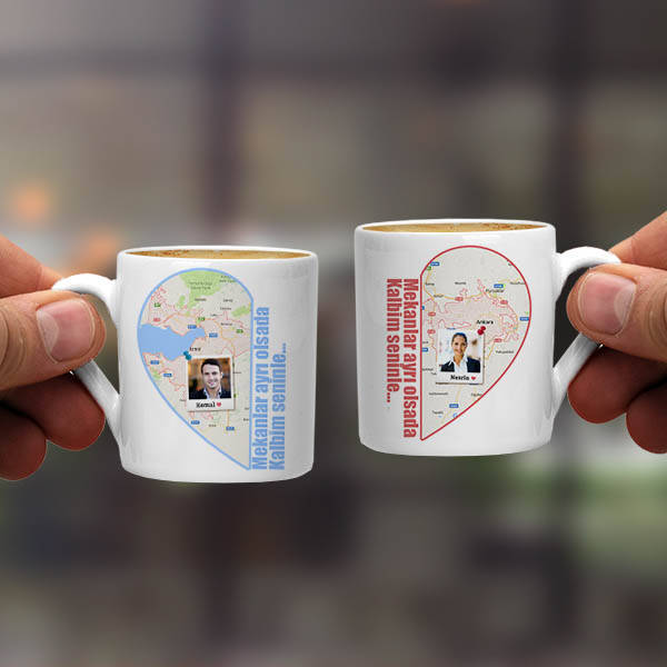 Ayrı şehirdeki sevgililer İkili kahve fincanı kahve sever sevgiliniz için düşünülebilecek en yaratıcı hediyelerden biri. Ayrıca kahve falınızdan, sevgilinizle birlikte ikinize özel tasarlanmış özel bir kahve fincanı seti çıktı. 2 adet size özel kahve fincanı olarak tasarlanacak olan ayrı şehirdeki sevgililer tasarımlı kahve fincanı, en güzel kahveli sohbetlerinizde elinizde size eşlik ediyor olacak.