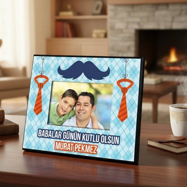 Üzeri mavi baklava desenlerri ve bıyıklı, kravatlı figürler kullanılarak süslenmiş son derece şık bir resim çerçevesi olan Babalara Özel HDF Fotoğraf Çerçevesi ile bu babalar gününün en farklı hediyesi sizin olsun! Sevgili babanızın ismine ve kişisel mesajınıza özel olarak hazırlanacak Babalara Özel HDF Fotoğraf Çerçevesi içerisine, ister çocukluğunuzda babanızla birlikte çektirdiğiniz şirin bir fotoğrafınızı, isterseniz babanız, anneniz ve kardeşlerinizle birlikte özel bir aile fotoğrafınızı koyup hediye edebilirsiniz.
