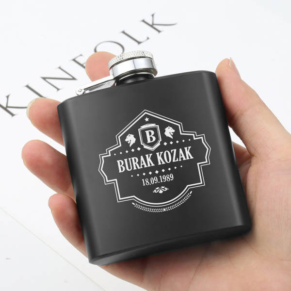 1 -) İçecek matarası paslanmaz kaliteli çelikten yapılmış olup, mat siyah renktedir.2 -) Matara üzerine yazılacak olan yazılar lazer kazıma yöntemiyle yazılmakta olup, uzun yıllar kalıcıdır ve asla silinmez!3 -) 6 OZ - 180 Ml kapasiteye sahiptir. Ölçüleri : 11 x 9,5 X 2 cm.dir. Mataranın kapağı sıvı geçirmez metal contadan üretilmiştir.4 -) Bu ürünü kişiye özel hale getirebilmemiz için Sepete Ekle butonu üzerindeki kişiselleştirme alanlarını doldurmanız gerekmektedir.5 -) İçki Matarası, hafta içi saat 14.00'a kadar verilecek siparişlerde aynı gün kargoya teslim edilmektedir.Bilgilendirme: Satışı yapılan ürün, yalnızca içki servisi için tasarlanmış bir aksesuar setidir. Bu ürün alkollü içki içermez ve alkol tüketimini teşvik etme amacı taşımaz. 18 yaşından küçüklere alkollü içki satışı yasaktır. Aşırı alkol tüketimi sağlığa zararlıdır. Lütfen sorumlu bir şekilde tüketiniz.Ürün Etiketleri
