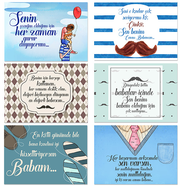 2 -) Kutu içerisinde 50 adet özel tasarım Baba sevgisi mesajları yazılı kart bulunmaktadır.