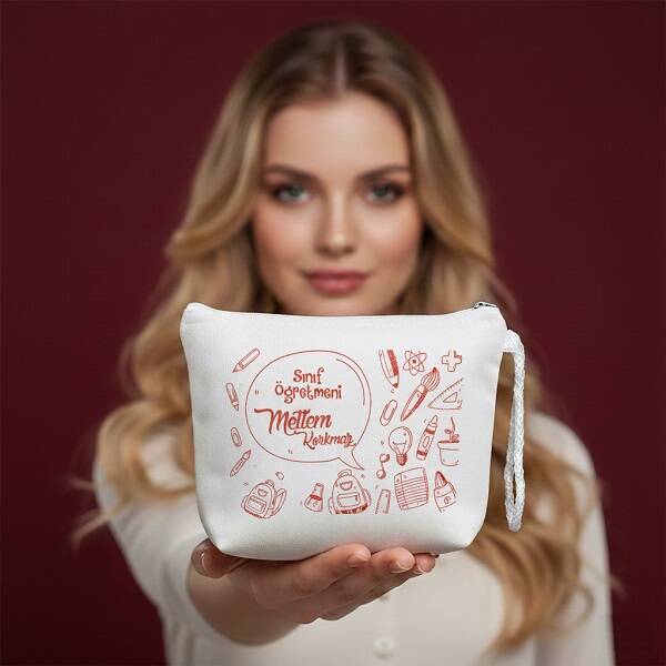 24 Kasım öğretmenler gününde çok sevdiğiniz sınıf öğretmeninize farklı bir hediye mi vermek istiyorsunuz? O halde size hem fiyatıyla güzel bir fırsat; hem de aynı zamanda öğretmeninizi çok mutlu edecek farklı bir hediye seçeneği sunuyoruz. İşte karşınızda sevgili öğretmeninizin ismine özel olarak hazırlanacak bez makyaj çantası. Üst tarafı fermuarlı formda hazırlamış olduğumuz ve üzeri şahane desenlerle süslenmiş olan Bayan Öğretmene Özel Makyaj Çantası sevgili sınıf öğretmeninize sunabileceğiniz en yaratıcı hediyelerden sadece biri.