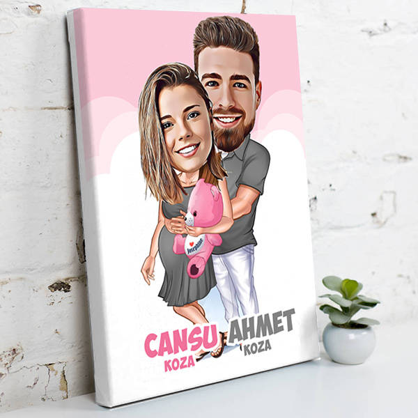 Bebeğimizi Beklerken Karikatürlü Kanvas Tablo