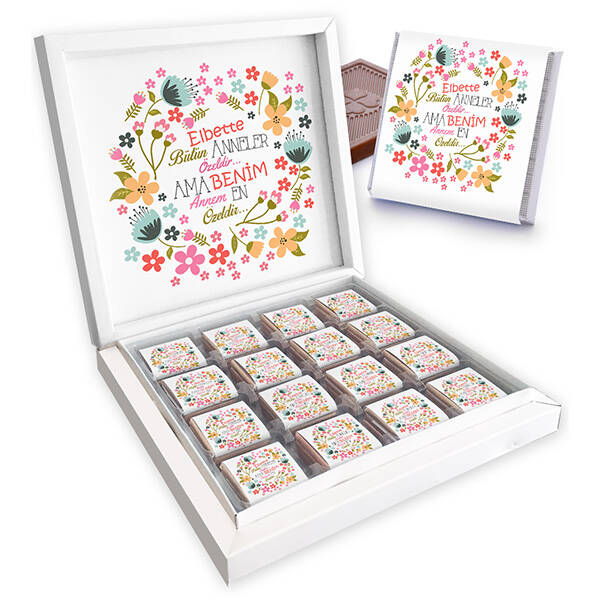 1 -) Ürün, beyaz renk şık ve kaliteli hediye kutusu içerisinde gönderilmektedir.2 -) Hediye Kutusu ölçüleri :22 x 22 x 3,50 cm.dir.3 -) Tercihe bağlı olarak 16'li,32'li ve 48'li adetlerden sipariş verebilirsiniz. Çikolatalar kare şeklinde sütlü çikolatadır.4 -) Çikolatalarımız MABEL olup taptazedir. Çikolata ölçüleri 4 X 4 cm.dir.5 -) Ürün kişiselleştirme çikolata ambalajı üzerine ve çikolata kutusunun iç yüzeyine yapılmaktadır.6 -) Benim Annem En Özeldir Çikolata Kutusu hafta içi saat 14.00'a kadar verilen siparişlerde Aynı Gün Kargoya teslim edilmektedir.