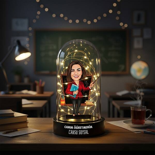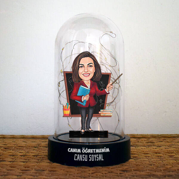 Bilgi dolu bir öğretmeninizi temsil eden bu fanus içindeki ışıklı biblo, hem eğlenceli hem de anlamlı bir hediye seçeneği sunuyor. Bilgi dolu karikatürü ve esprili tasarımıyla öğretmeninizin odasına pozitif bir dokunuş yapacak.