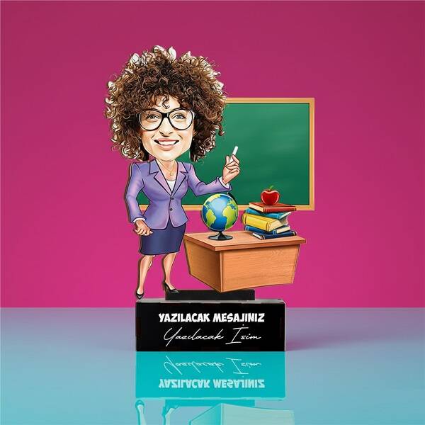 Bu kez öğretmeninizin yüzündeki mutlu tebessümün sebebi, kendi karikatürü ile hazırlanacak bu komik biblo olacak. Sizler de ürün resimdeki ki öğretmeninize özel karikatürlü bir bibloyu ona özel hazırlamamızı ister misiniz? Alacağı bu sürprizli öğretmenler günü hediyesi ile neye uğradığını şaşıracak olan sevgili öğretmeniniz, eminiz ki gülmekten yerlere yatacaktır. Şimdi hızlıca sipariş verip dilediğiniz adrese isteyebileceğiniz bu güzel bibloyu, ürün özelleştirme kısmından özelleştirerek hemen sepetinize eklemelisiniz.