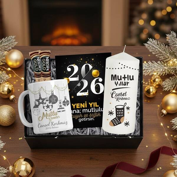 1 -) Kutu içerisinde 5 parça ürün bulunmaktadır. özel tasarımlı yılbaşı kartpostalı, isme özel kahve fincanı, 2 adet Nescafe Gold 3'ü birarada, 1 adet mesajlı ve isme özel blok mum.2 -) Kahve fincanı mesajlı ve isme özel olduğundan, yukarıdaki kutuya bu kupa bardak üzerine yazılmasını istediğiniz ismi girmeniz gerekmektedir.3 -) Yılbaşı ruhunu en iyi yansıtan bu hediye kutusu saat 14.00'a kadar sipariş vermeniz halinde aynı gün kargoya teslim ediyoruz.Ürün Etiketleri