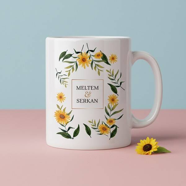 Çiçek Desenli İsimli Sevgili Kupa Bardağı