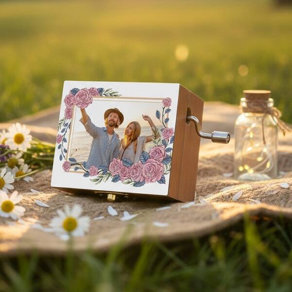 Çiçek Motifli Fotoğraflı Müzik Kutusu