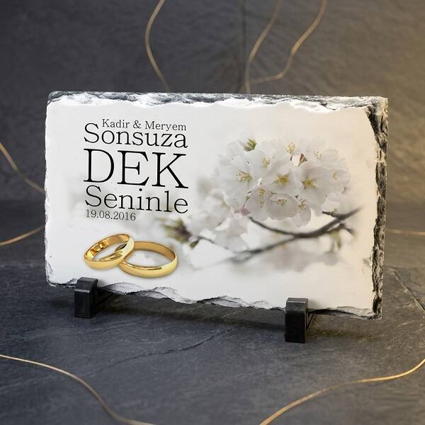 Çiçeği burnunda evli çiftlere özel olarak hazırladığımız mesajlı ve isim yazılı dekoratif taş baskı, hayat arkadaşınıza verebileceğiniz en kalıcı hediyelerden biri. Çünkü taşın doğallığı ve sağlamlığı; kişisel mesajınızla birlikte anlamına anlam katacak olan Yeni Evli Çiftlere Özel Taş Baskıda bir araya geliyor. Söz & nişan veya nikah sonrasında yaşadığınız o büyük mutluluğu biricik eşinizle paylaşmak istiyorsanız, Yeni Evli Çiftlere Özel Taş Baskı en güzel hediye seçeneklerinden biri.