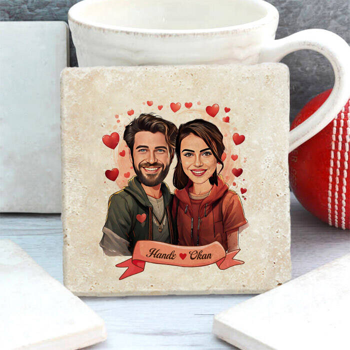 Bazı aşklar büyüktür, bazı aşklar ise destansı! Çiftlere özel olarak hazırlanan bu bardak altlığı, aşkınızı en eğlenceli ve anlamlı şekilde ifade etmenin harika bir yolu. Karikatürünüzle süslenmiş bu özel tasarım, sevgilinize "seni seviyorum" demenin en yaratıcı hali olacak!