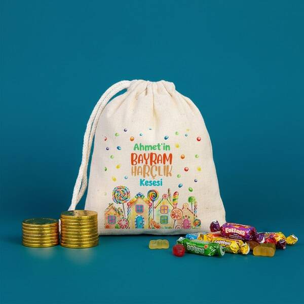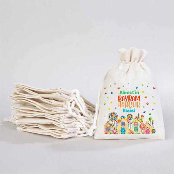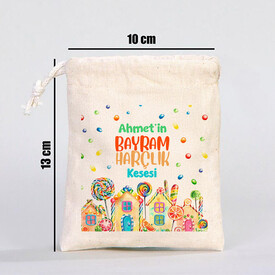 Çocuklara Hediye Şeker Bayramı Tasarımlı Bez Harçlık Kesesi