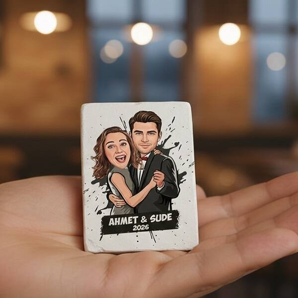 Dans eden çiftler karikatürlü taş buzdolabı magneti, ritmin ve sevginin uyumunu yansıtan bu taş mıknatıs, sevgilinizle birlikte dans ettiğiniz anıları canlandırmanın neşeli bir yoludur. Dans eden çiftler karikatürlü taş buzdolabı magneti, doğal taşın dayanıklılığı ve karikatürün canlılığıyla evinizi dansın enerjisiyle doldurur. Özel anılarınızı komik bir şekilde yansıtan karikatürlü taş buzdolabı magnetleri, sevgilinize eşsiz bir sürpriz sunmanın keyifli yolu. Kendinizin ve sevdiğinizin fotoğrafını yükleyerek bu harika hediye ile duygusal anılarınıza esprili bir dokunuş katın.