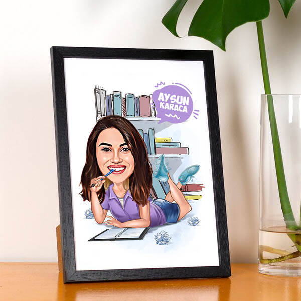 Ders Çalışan Kız Karikatürlü Resim Çerçevesi