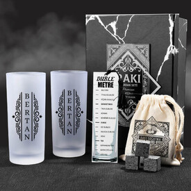 Dikey İsimli İkili Rakı Kadehi Seti Hediye Kutusu
