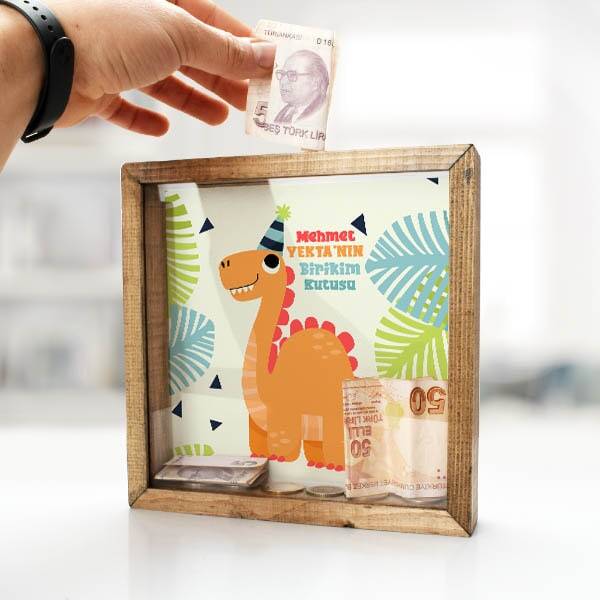 Dinozor Temalı Çerçeveli Çocuk Kumbarası