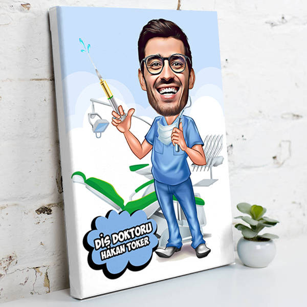 Diş Hekimi İçin Karikatürlü Kanvas Tablo