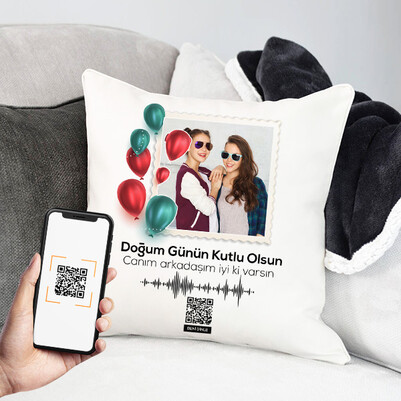 Yakın arkadaşınıza olan sevginiz daima bu yastık üzerinde korunuyor olacak. Özel tasarımı bu orijinal yastığa şık ve güzel bir hava katarken, üzerinde yer alan kız arkadaşınıza ait kişiye özel detaylar özel bir tavır katıyor. Yılın en orijinal ve en yaratıcı doğum günü sürprizi şu anda sizlerle şu an adeta bakışıyor. Kişiye özel ses izi yastıkla kız arkadaşınızın hafızasından hiç silinmeyecek en orijinal sürprize var mısınız? Kişiye özel ses izi yastıkla kız arkadaşınıza doğum günü mesajınızı en yaratıcı şekilde qr kod teknolojisiyle buluşturduğumuz bu armağanla gösterebileceksiniz.