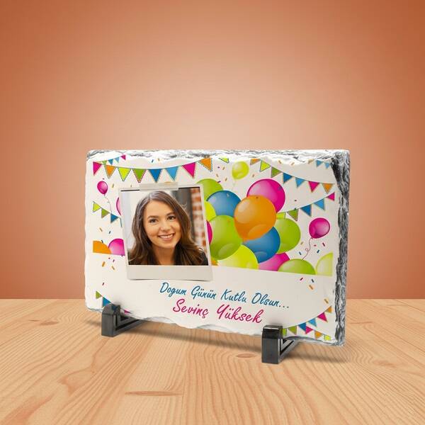 Yeni yaşını kutlayacak olan sevdiklerinize, üzerinde fotoğraf, isim ve doğum günü kutlama mesajınızın yer alacağı, taş gibi sağlam bir hediye vermek ister misiniz? İşte karşınızda rengarenk balonlar ve konfetilerle süslenmiş, arkadaşlarınızın uzun yıllar saklayacağı en güzel hediye seçeneği olan Doğum Günün Kutlu Olsun Taş Baskı!