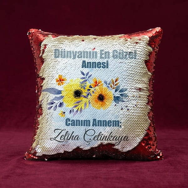 1 -) Yastık 40 x 40 cm. ölçülerinde olup, kare şeklindedir. Üzerinde KIRMIZI renkte ışıltılı payetler bulunmaktadır.2 -) Pulları aynı istikamete doğru çevirdiğinizde payetlerin arkasına basılı olan fotoğrafınızı görebilirsiniz.3 -) Ters tarafa doğru payetleri ittiğinizde ise KIRMIZI ışıltılı pullarla karşılaşacaksınız.4 -) Sihirli yastık mekanlarınız için oldukça dekoratif özellikte bir yastık modelidir. Koltuk köşesi süslemesi için idealdir.5 -) Siparişiniz halinde, içi kaliteli boncuk elyaf dolgulu şekilde gönderilecektir.6 -) Dünyanın En Güzel Annesi Sihirli Yastık hafta içi saat 14.00'a kadar sipariş vermeniz halinde aynı gün kargoya teslim ediyoruz.7 -) Yastık ütülenmemelidir ve 40 derecede ılık suda elde yıkanması tavsiye edilmektedir.Ürün Etiketleri