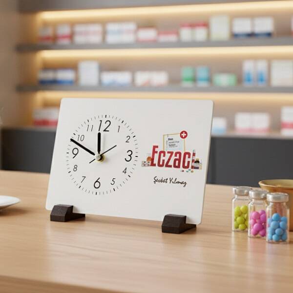 Eczane açan eczacı sevdiklerinize işlerinde hayırlar dilemek veya mahallenizdeki eczacınıza küçük bir teşekkür hediyesi olarak düşünebileceğiniz bu dikdörtgen masa saati, onlara mesleklerini daha da sevdirecek ve hoş bir sürpriz olacaktır. Mesleki temalı masa saatleri oldukça kullanışlı hediyelerdendir. Ev veya çalışma ortamlarımızda kullanacağımız farklı objeler, hayatımıza renk katma konusunda heyecan verici objelere dönüşebilmektedir. Yanı sıra bu tarz objeler yaşama tarz ve tat katan nüvelerden de sayılabilir bu sayfada gördüğünüz ismine özel masa saati de eczacınızın yaşamlarını renklendirecek obkelerden biri olarak karşınıza çıkmaktadır.