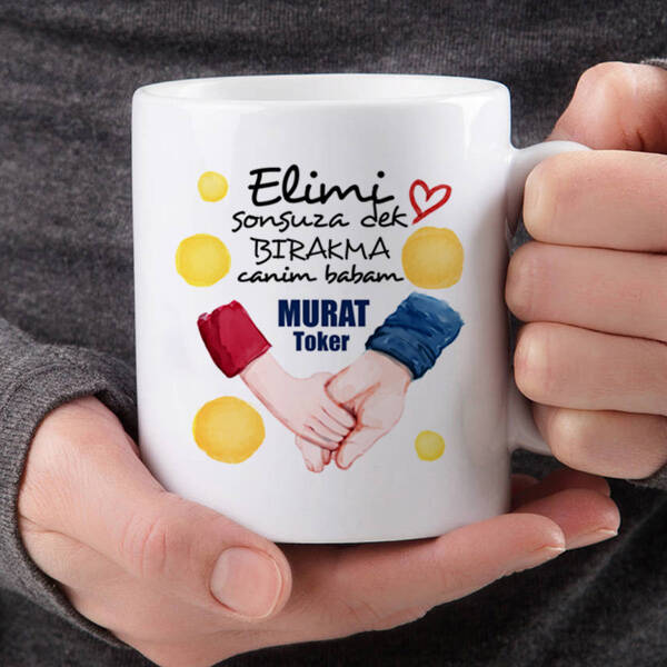 Bir tanecik babanıza, sevginizi ve duygusallığı dibine kadar yaşatacak Ellerimi Hiç Bırakma Canım Babam Kupa Bardağı, özellikle kızından babasına gidecek en anlamlı babalar günü armağanı! Üzerinde kızının elini tutmuş baba ve kızı tasarımının yer aldığı ve anlamlı mesajıyla babanızın kalbini saracak bu narin armağanınızla Ona verdiğiniz değeri en güzel şekilde hissettirebileceksiniz. Aynı zamanda bu naif hediyeniz, babanızın ismine özel şekilde hazırlanacak olmasıyla da eminiz ki çok özel hissettirecektir.