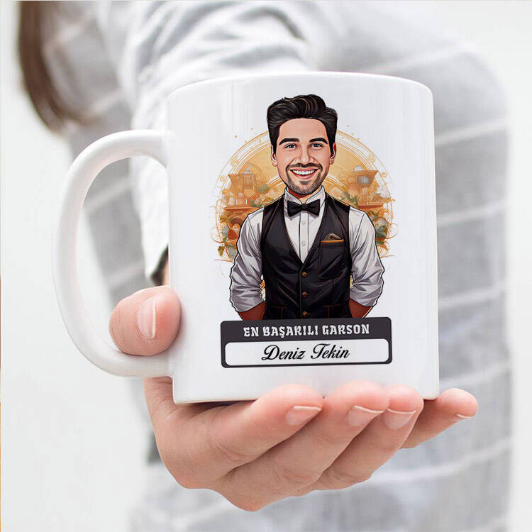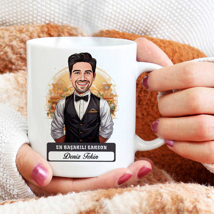 Hızlı, pratik ve her zaman güler yüzlü bir hizmet sunan başarılı bir garsona teşekkür etmenin en keyifli yolu, ona özel hazırlanan en başarılı erkek garson karikatürlü kupa bardak! Müşterilerine sunduğu içecekleri büyük bir özenle taşıyan garsonlar, bu kez kendi isimleriyle tasarlanan esprili kupa bardağıyla mola keyfini çıkaracak.