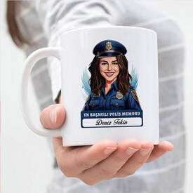 En Başarılı Kadın Polis Memuru Karikatürlü Kupa Bardak