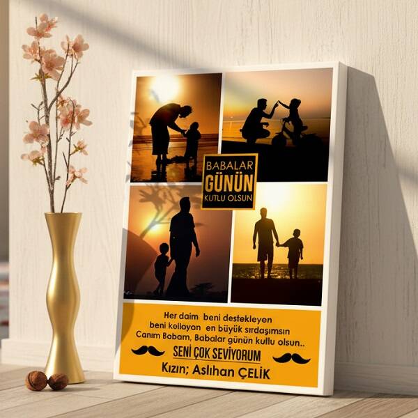Üzerinde 4 seçeceğiniz fotoğrafın ve kişisel mesajınızın taşınacağı bu kanvas tablo ile, sevgili babanıza anlamlı bir hediye verebilir ve tüm bu emekleri karşılığında Onu etkileyici bir şekilde sevginizi gösterebilirsiniz. Babalar Günü için biricik babanızı mutlu edecek ve aynı zamanda Ona olan sevginizi en sağlam şekilde gösterecek anlamlı hediyeler mi arıyorsunuz? İşte karşınızda Bu babalar günü fırsatını kalıcı bir hediye ile değerlendirebileceğiniz En Büyük Sırdaşım Canım Babam Kanvas Tablosu. En güzel ve en iyi hediyelere layıkolan sevgili babanıza bu dekoratif tablo ile kalıcı bir şekilde sevginizi ifade edebilirsiniz.