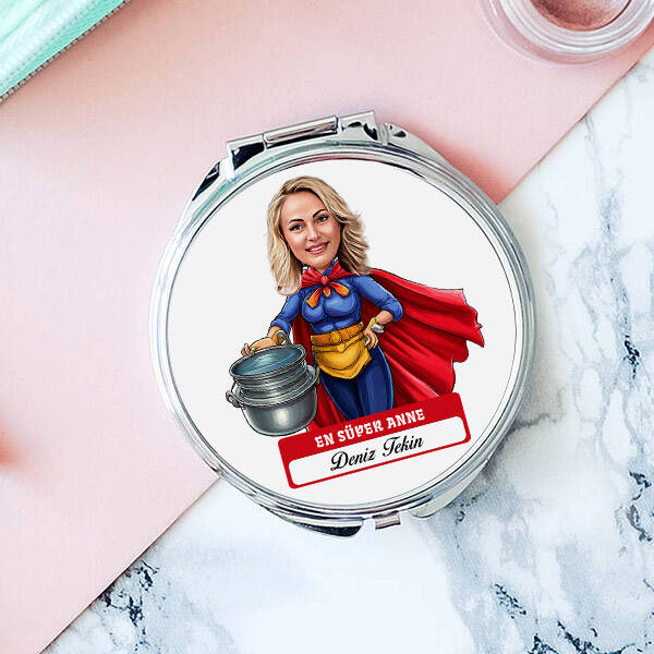 Her annenin süper kahraman olduğunu bilenler için en süper anne karikatürlü makyaj aynası, eşsiz bir hediye seçeneği! Anneler günü veya doğum gününde, anninizin her şeye yetişen enerjisini esprili bir karikatürle kutlayın. Bu kişiye özel ayna, hem şık hem de anlamlı bir hediye olarak anninizin kalbini fethedecek.