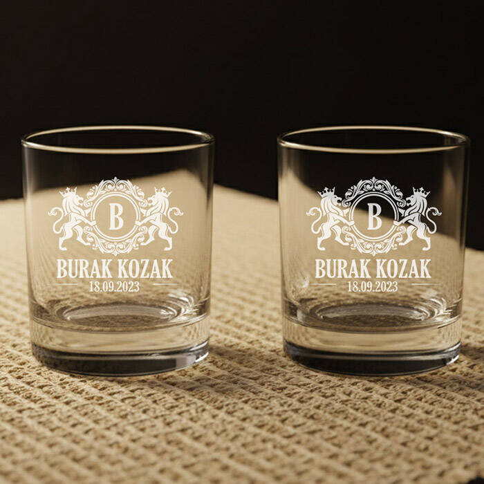 Erkeğe Hediye İsim ve Tarihli İkili Viski Bardağı