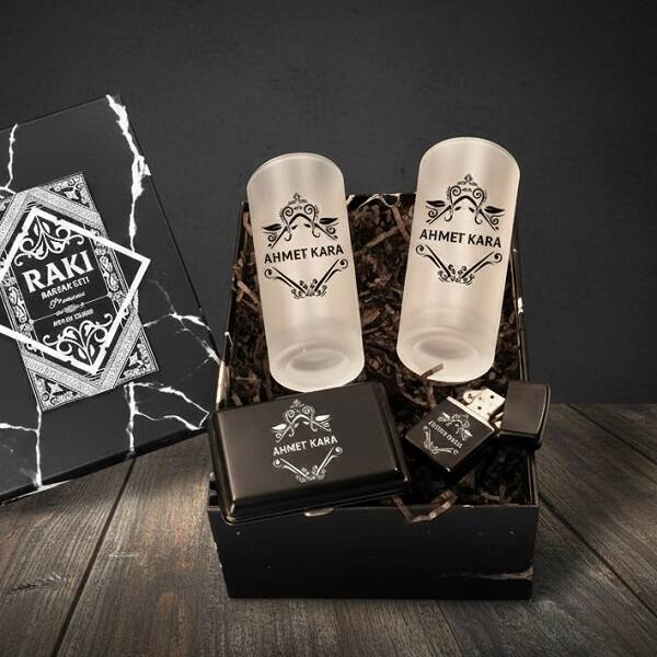 Erkeğe Hediye İsimli Rakı Bardağı ve Sigara Seti Kutusu